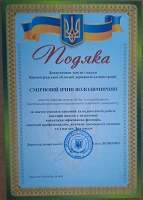 Щирі вітання колезі! Науково-педагогічну працю Ірини Смірнової відзначено Департаментом освіти і науки Кіровоградської обласної державної адміністрації. Вона отримала Подяку за значні успіхи в науковій та педагогічній роботі